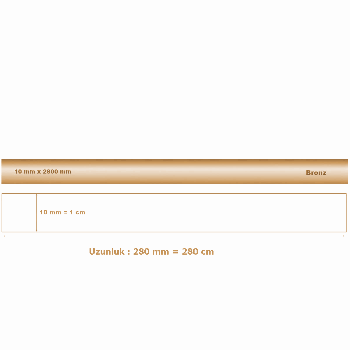 10 mm x 2800 mm Bronz Sibu Aynalı Pleksi Şerit Mobilya Süsü