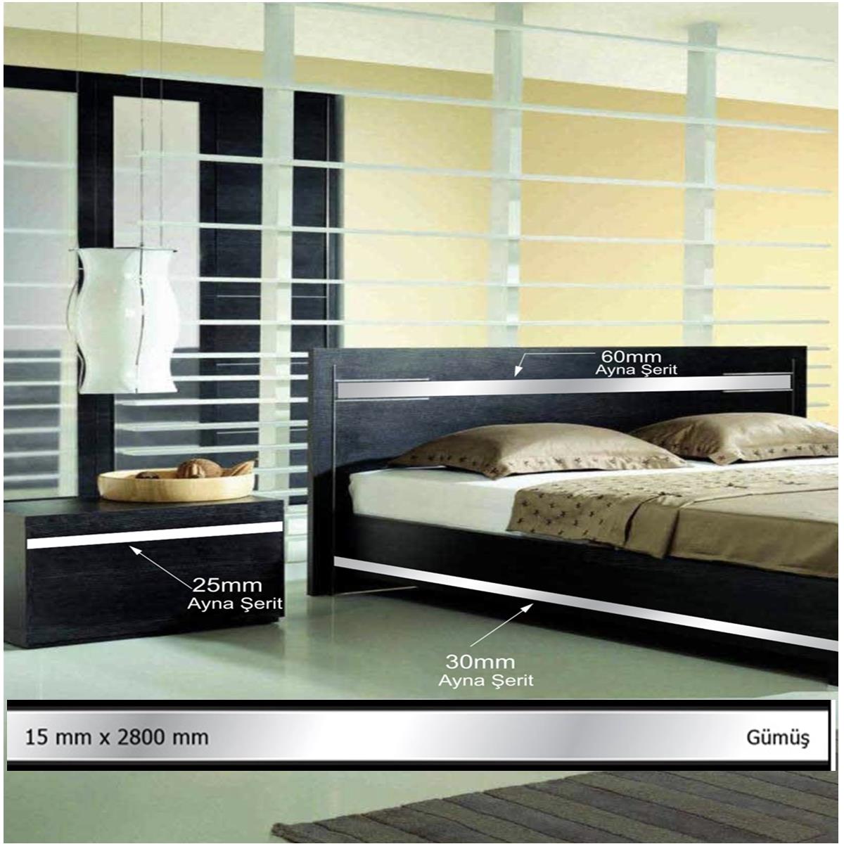 15 mm x 2800 mm Gümüş Sibu Aynalı Pleksi Şerit Mobilya Süsü