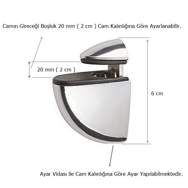 20 mm’ye kadar kalınlıktaki cam veya rafları tutabilir
