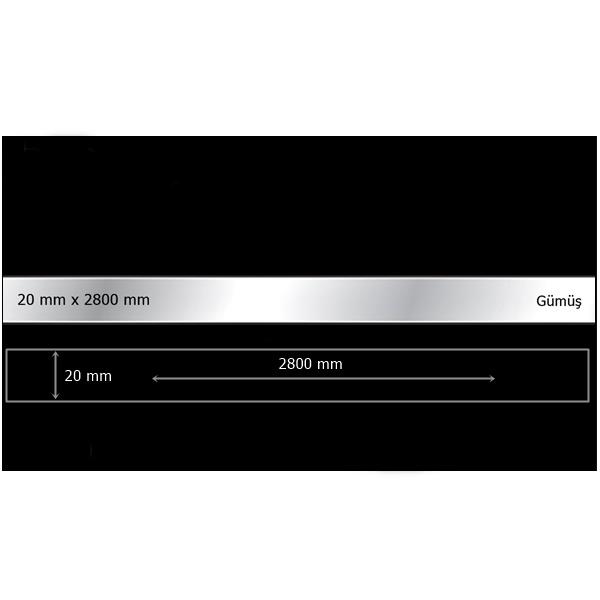 20 mm x 2800 mm Gümüş Sibu Aynalı Pleksi Şerit Mobilya Süsü