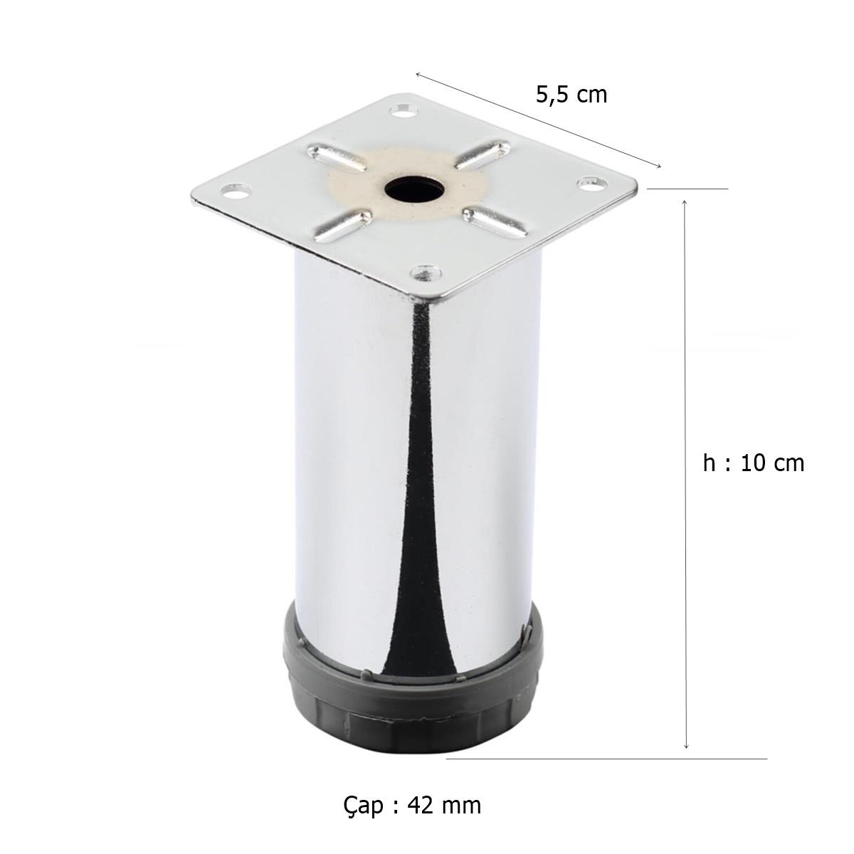 200 Adet Mobilya Ayağı Metal 10 cm Alttan Ayarlı 42 mm Krom