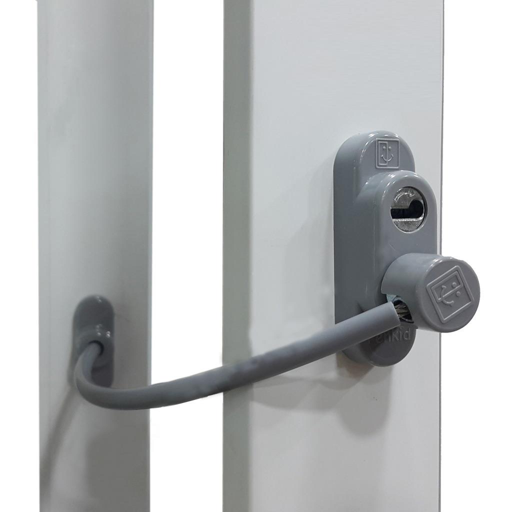 Penkid Çelik Halatlı Kablolu Pvc Pencere Çocuk Emniyet Kilidi Gri