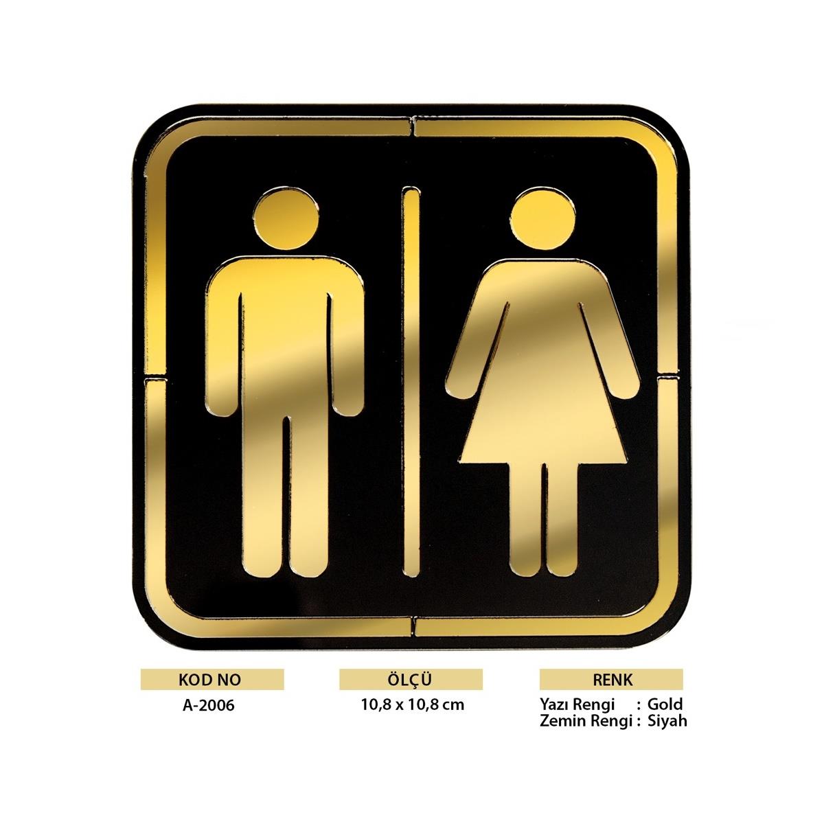 Abs Lüx Çift Katlı Yönlendirme Levhası Siyah-Altın Bay-Bayan Wc