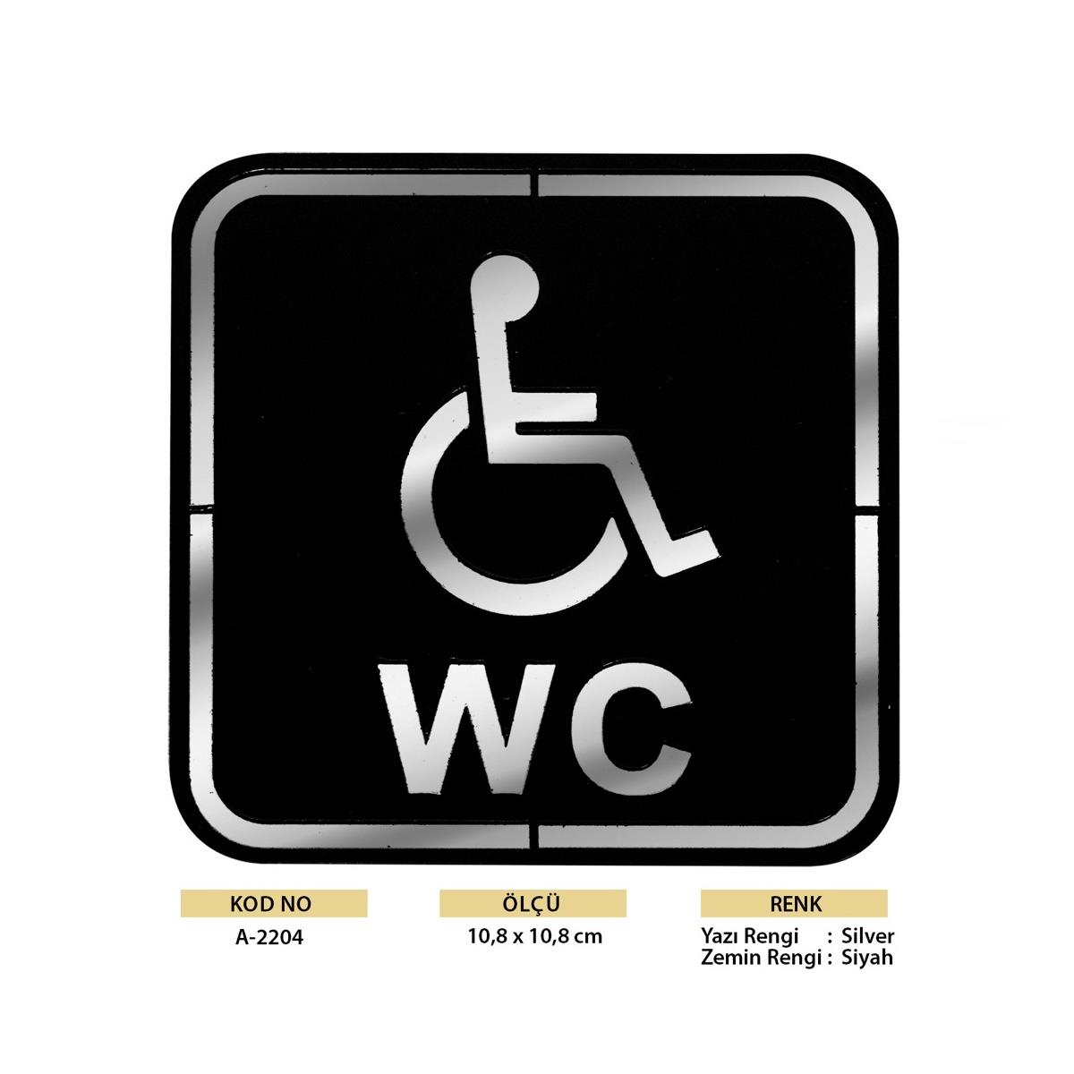 Abs Lüx Çift Katlı Yönlendirme Levhası Siyah-Gümüş Engelli Wc