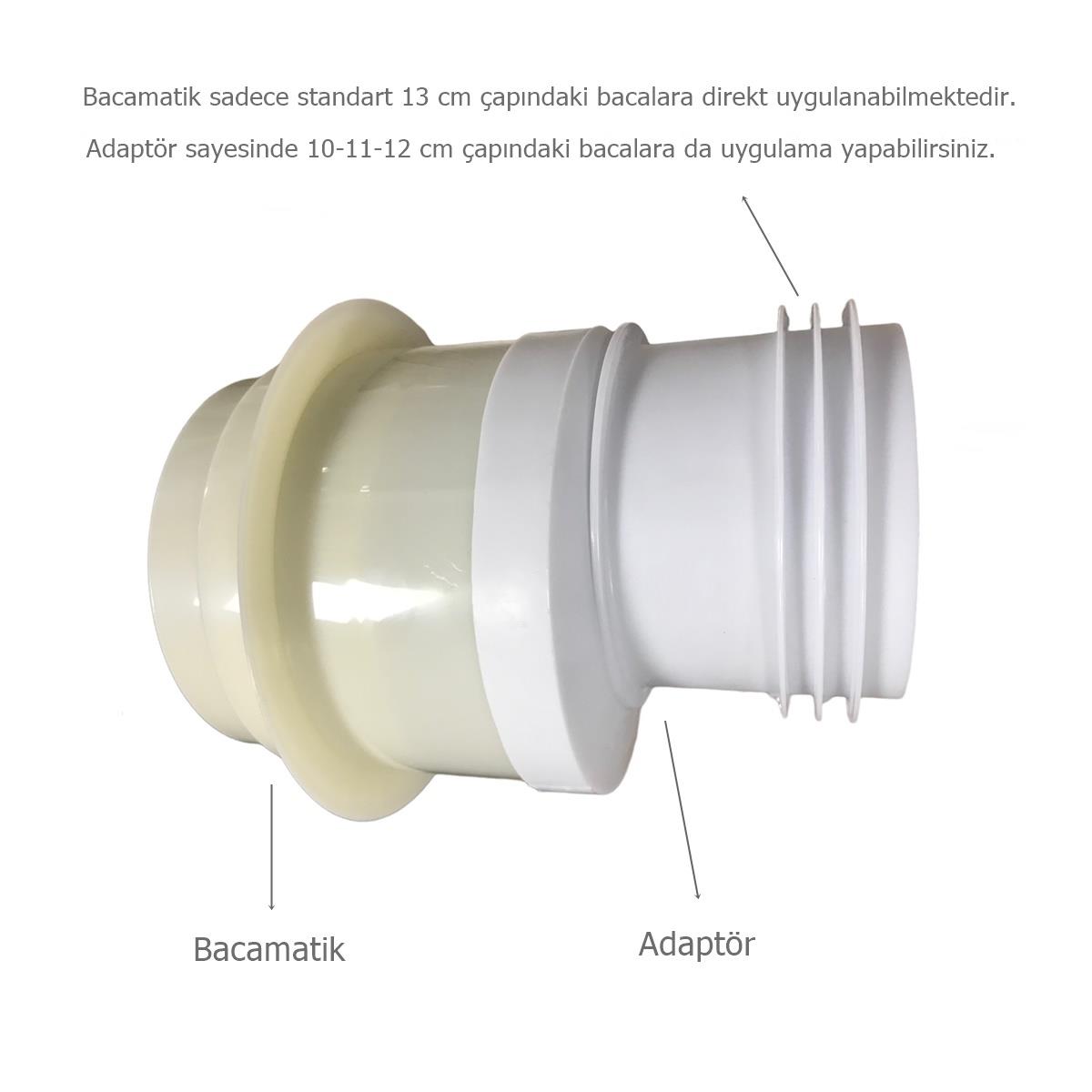 Standart 13 cm olmayan bacalarda , bacamatik montajı yapabilmeniz için , adaptörü ek görseldeki kırmızı çizgi ile