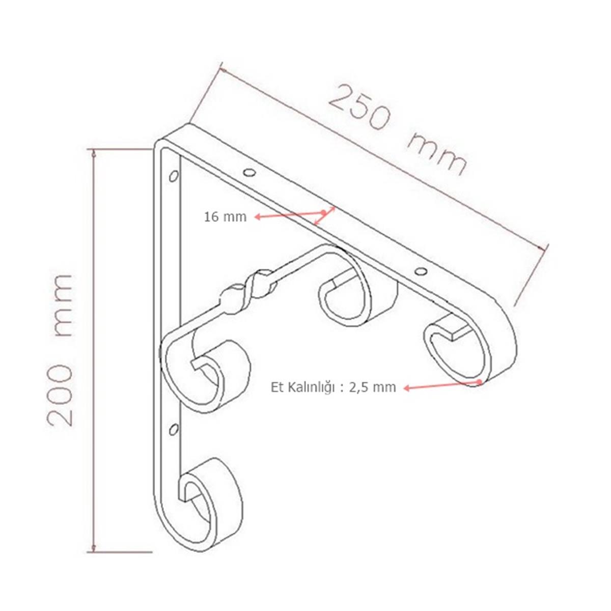 Burgulu Raf Altı Konsol 20 X 25 cm Siyah