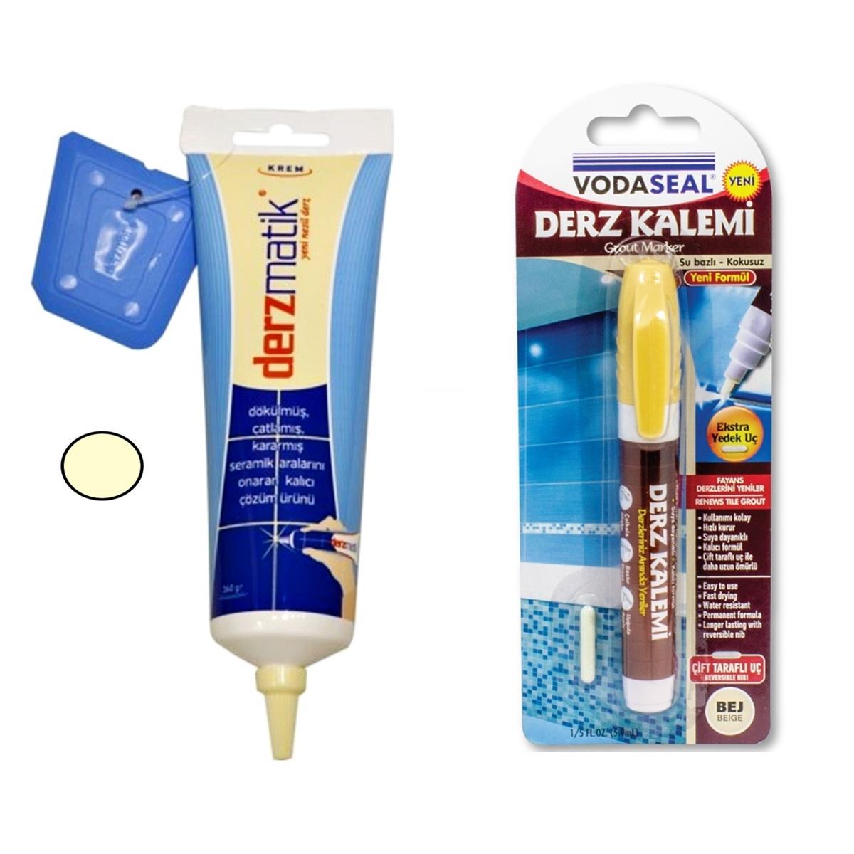 Derzmatik Fayans Arası Derz Dolgu 360 gr Krem + Derz Kalemi Set