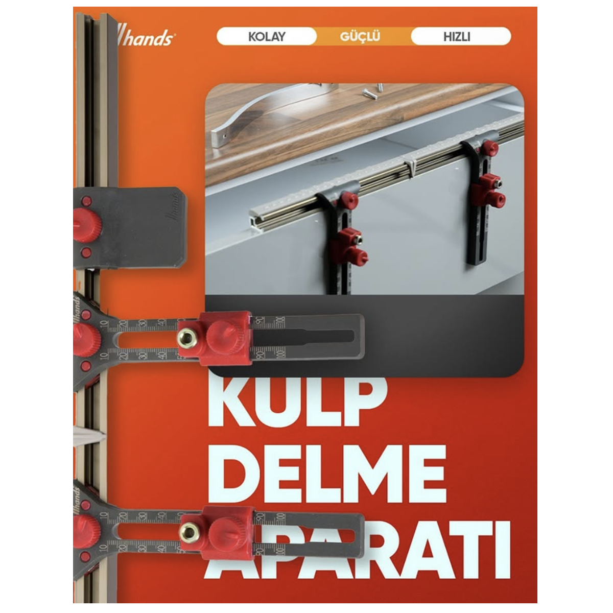 YATAY VE DİKEY KULLANILABİLEN YAPISI SAYESİNDE HER TÜRLÜ DOLAP KAPAĞINDA KULP BAĞLANTI DELİKLERİNİ PRATİK HIZLI VE HATASIZ BİR ŞEKİLDE AÇABİLİRSİNİZ.
