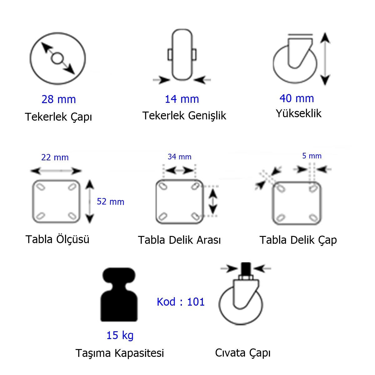 HTS SABİT TABLALI MOBİLYA TEKERLEĞİ