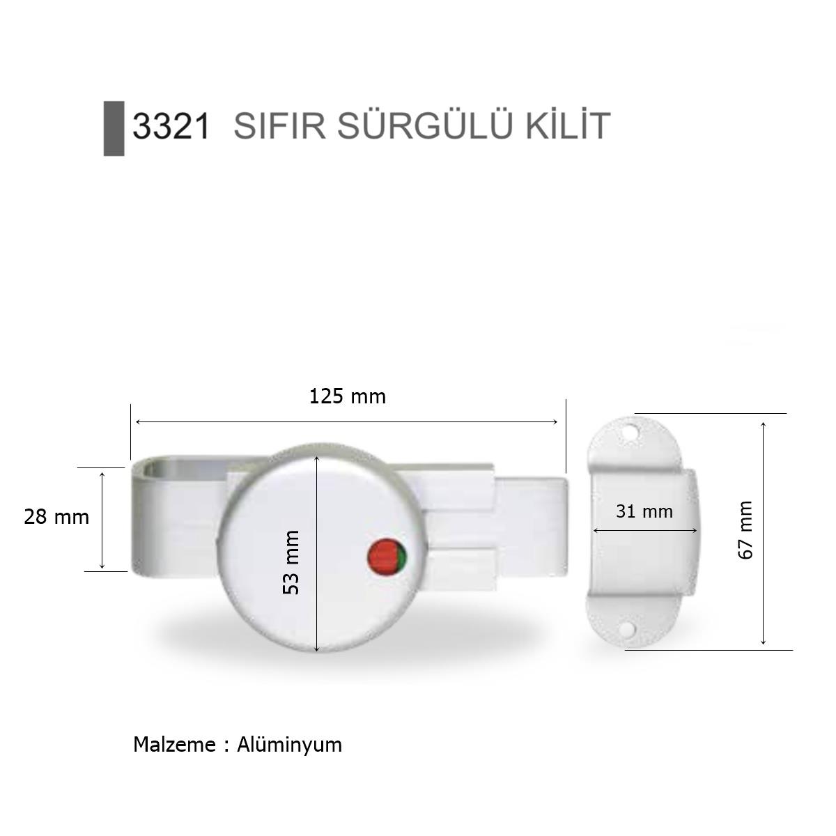 Islak Hacim 13 mm Kompakt Kabin Alm. Sıfır Sürgülü Kapı Kilidi
