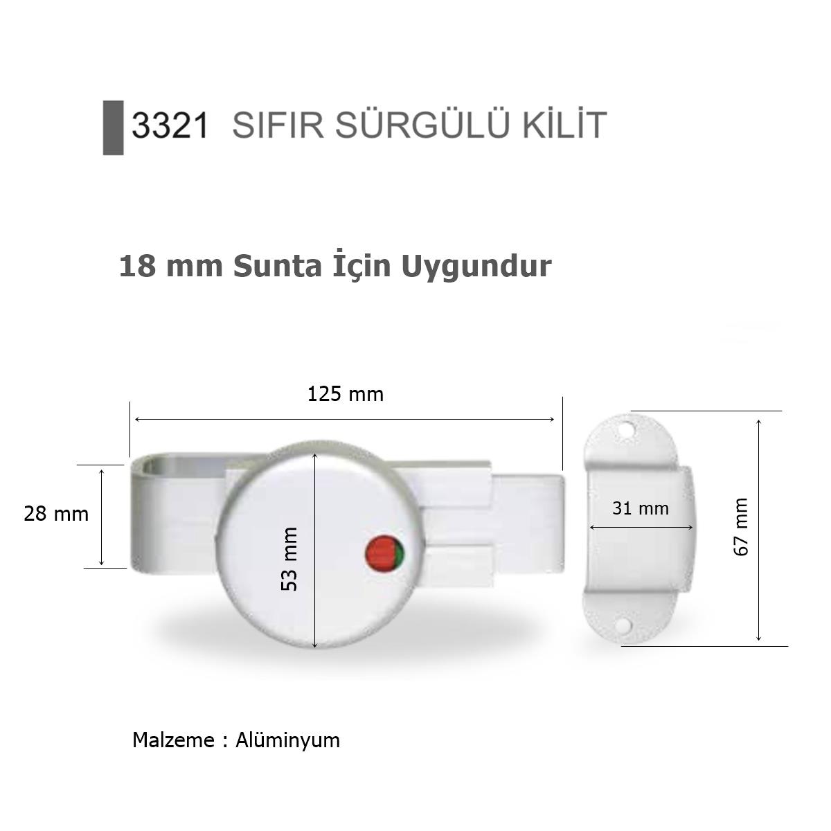 18 mm SUNTA İÇİN KABİN SIFIR SÜRGÜLÜ KİLİT