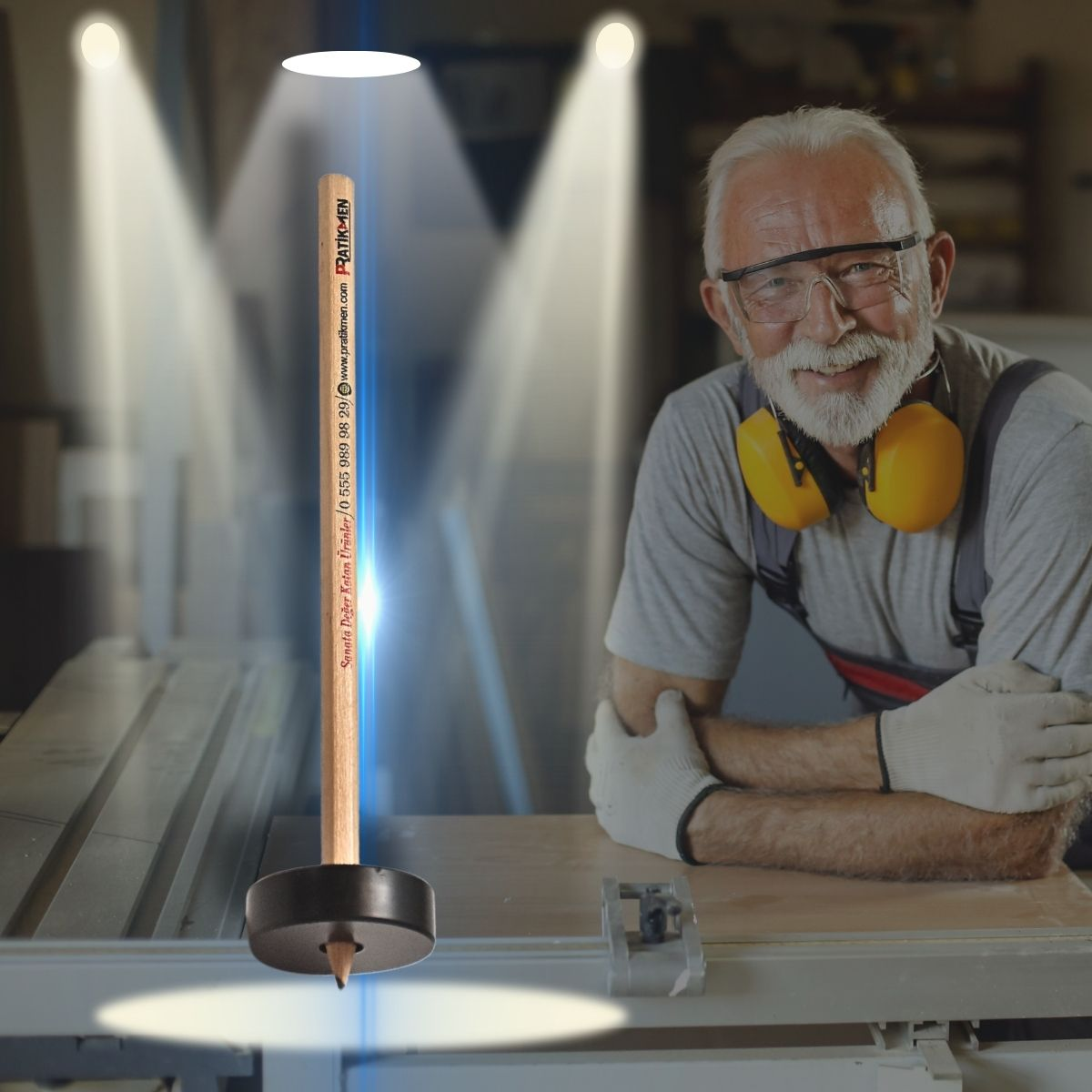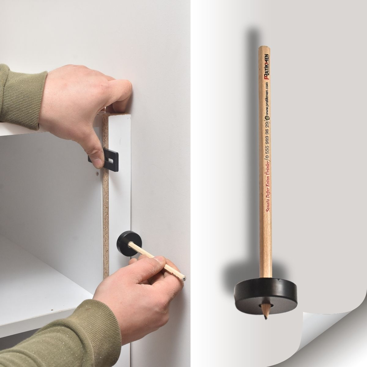 Pratikmen Açı Çizgi Kalemi ile duvara sabitlemek istediğiniz mobilya kısımları için rulmanlı kolay dönebilen işaretleyici sayesinde sapma yaşamadan kolay bir şekilde kesim yerini belirleyebilirsiniz.Pervaz çizimlerinde büyük kolaylık sağlar.