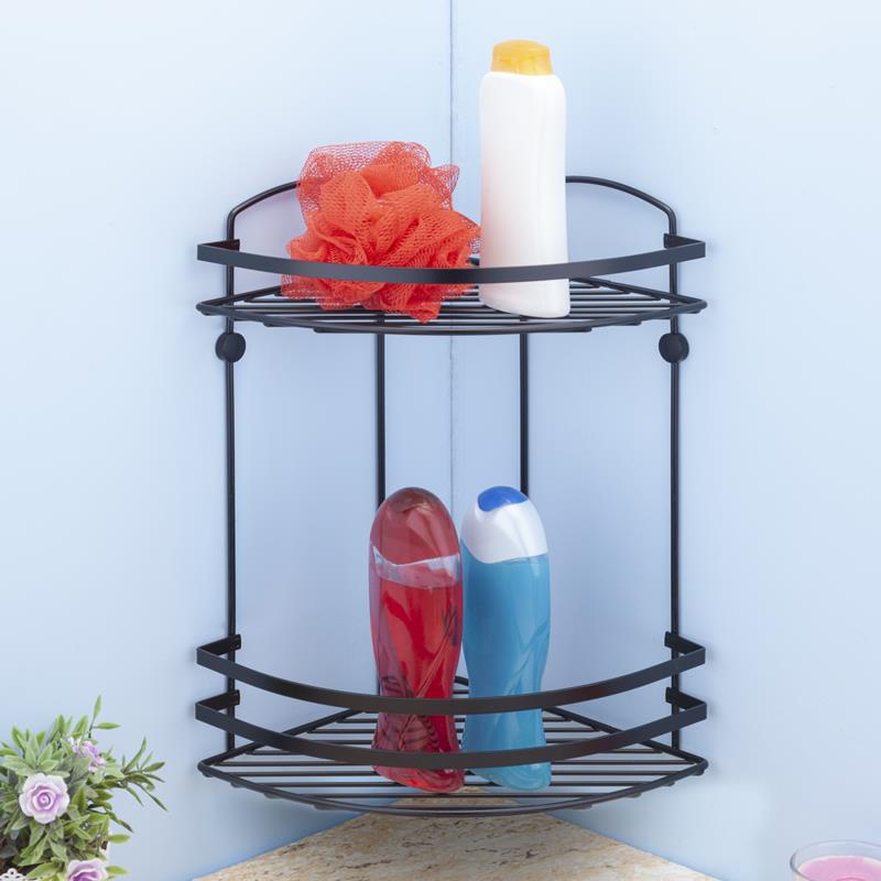 TEKNO TEL İKİ KATLI BANYO KÖŞE RAFI MAT SİYAH