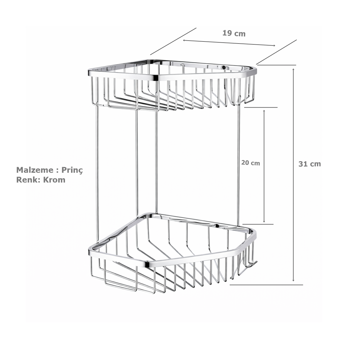 TEMA MARKA BANYO 2 KATLI KÖŞELİK PRİNÇ KROM 19 X 19 CM