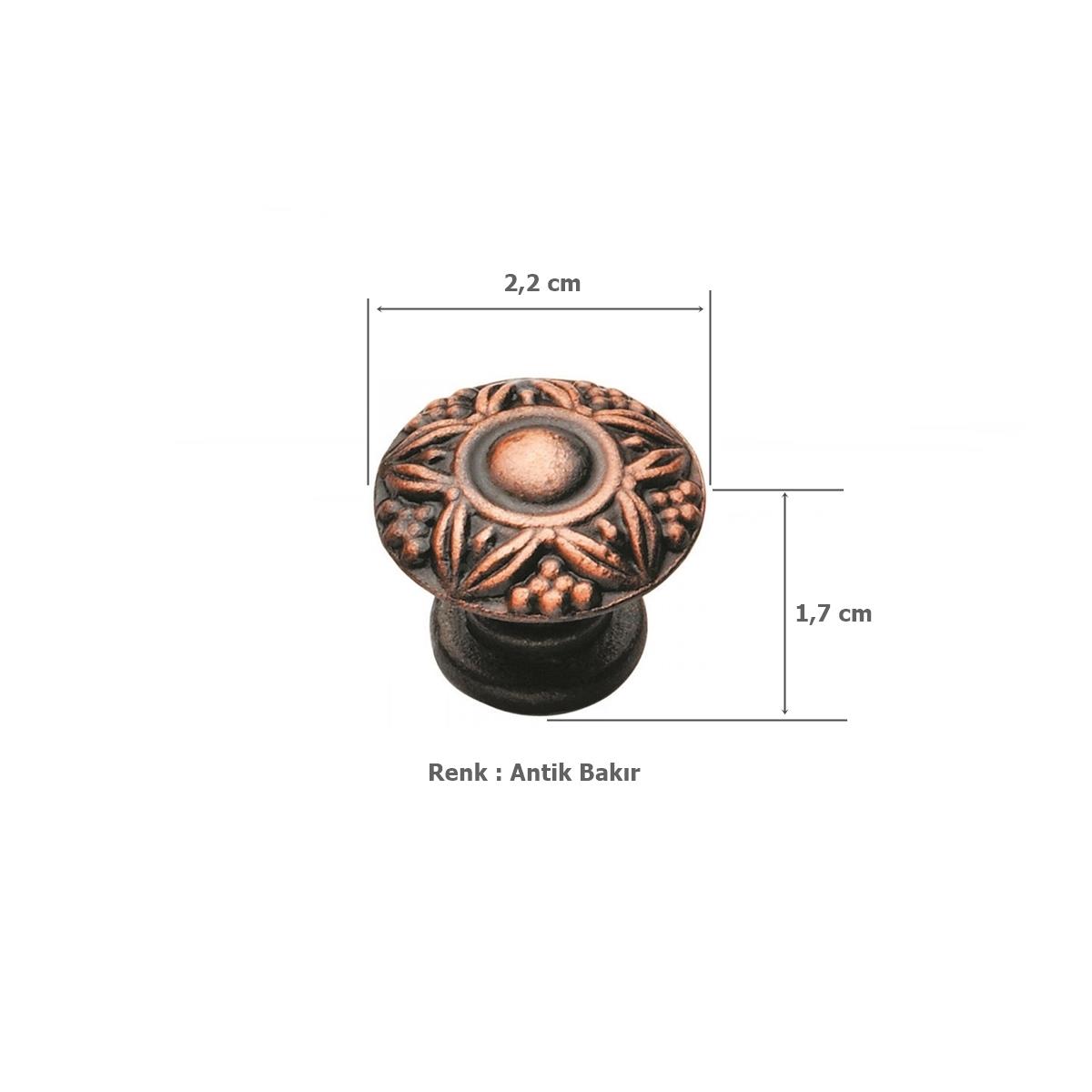 Üzümlü Düğme Tek Vidalı Eskitme Antik Bakır Mobilya Dolap Kulp