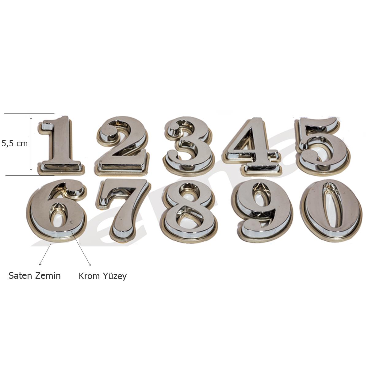 Yapışkanlı Plastik Rakam Araba ve Çelik Kapılar için 5 cm Krom